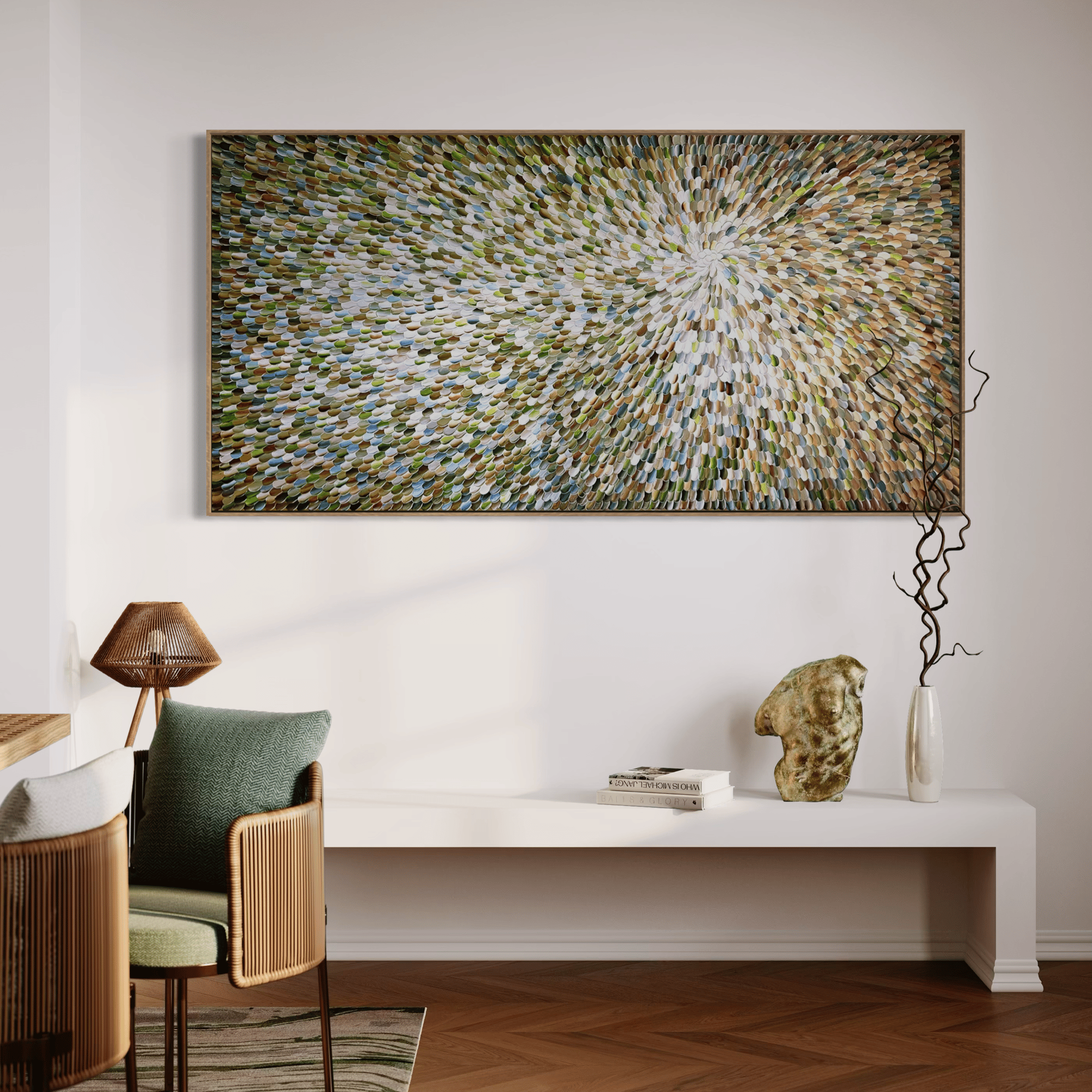 With every brush intentionally sculpted, - this piece connects with the cosmic breath within us, a pulse of light, movement and memory. It reminds of that vet inner space we all carry..