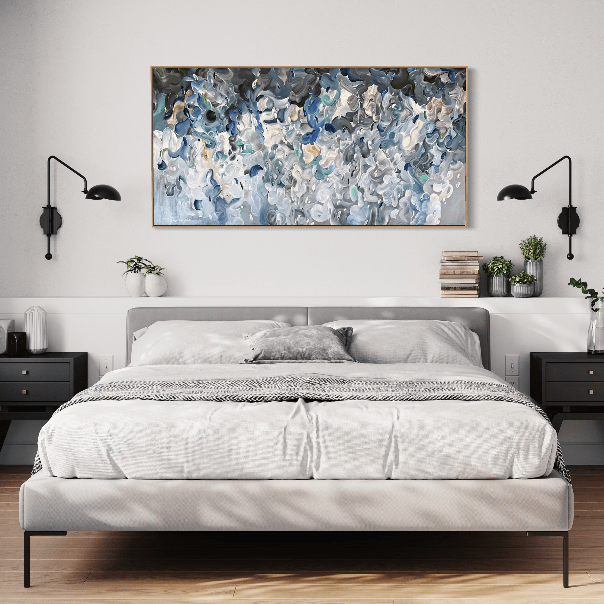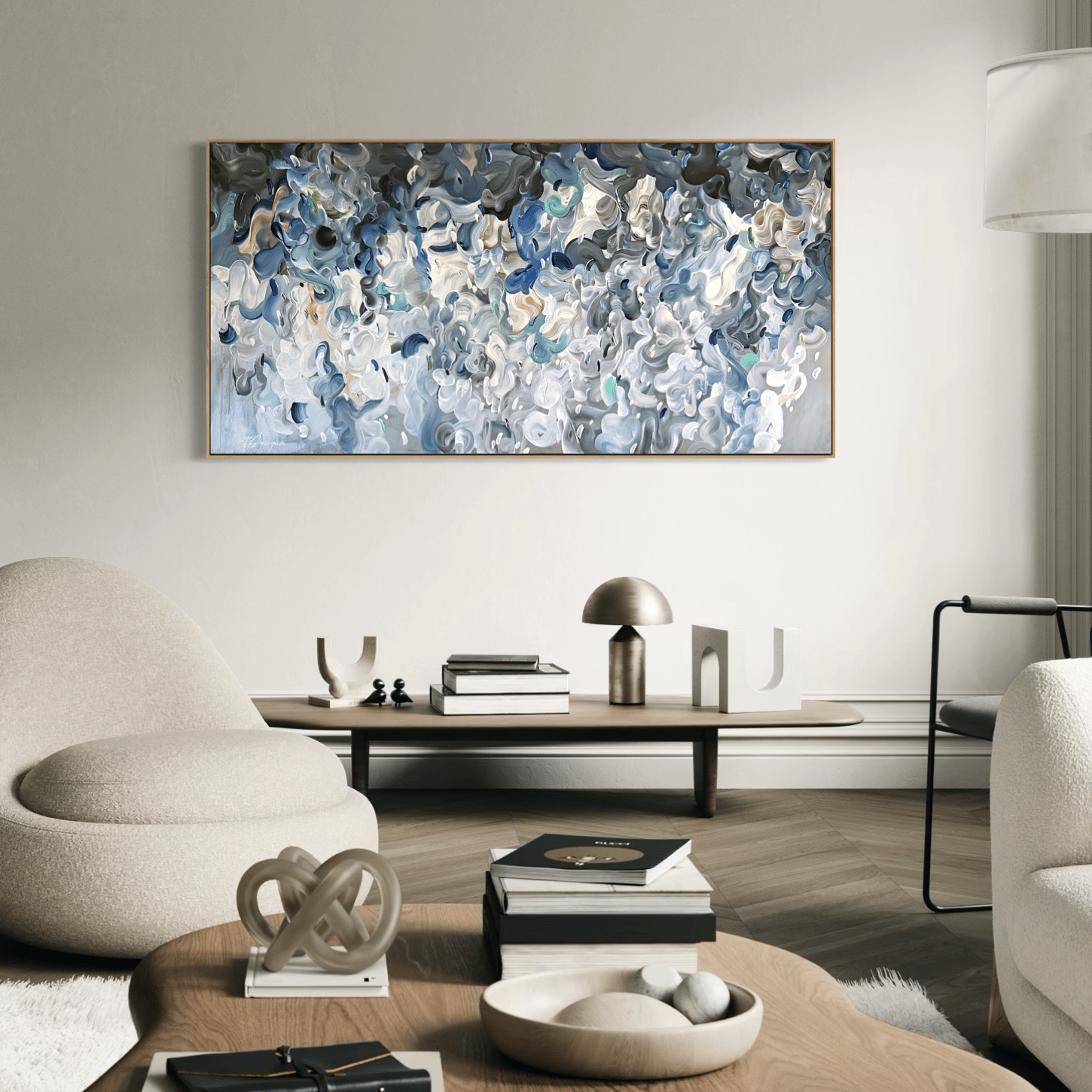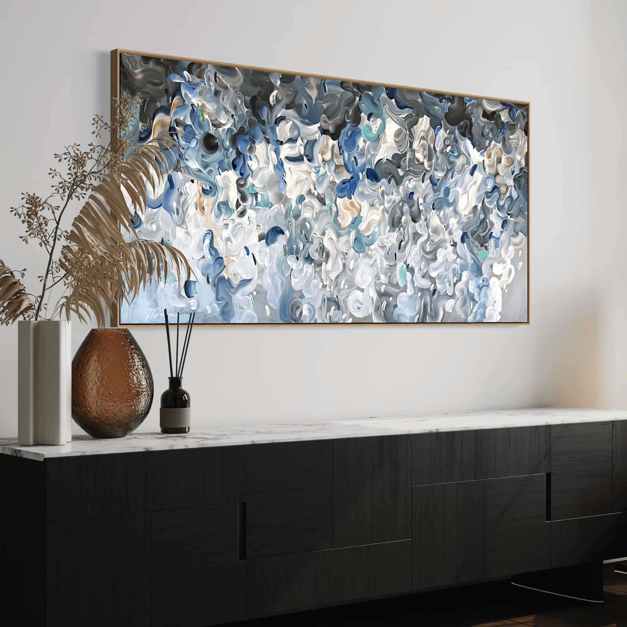 This artwork is an exploration of suspended motion and diffuse light, balancing complexity with stillness. Forms are layered and flowing, evoking a sense of breath and openness - a visual pause in a restless world.